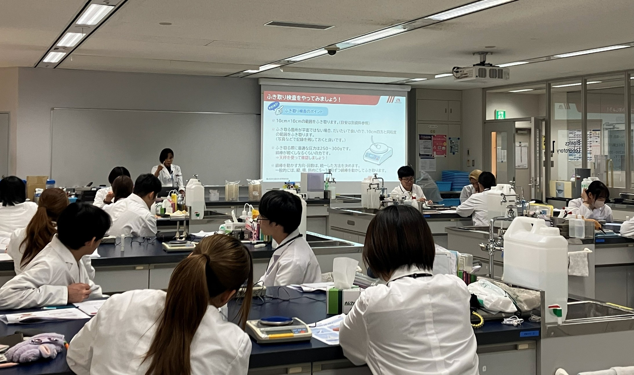 日本工学院八王子専門学校で、食品製造における微生物検査や衛生管理についての講義・実習を行ってきました(2025年11月20日)。応用生物学科1年生の学生の皆さんとの講義と、当社製品の検査用培地を用いた実習の様子をお届けします!